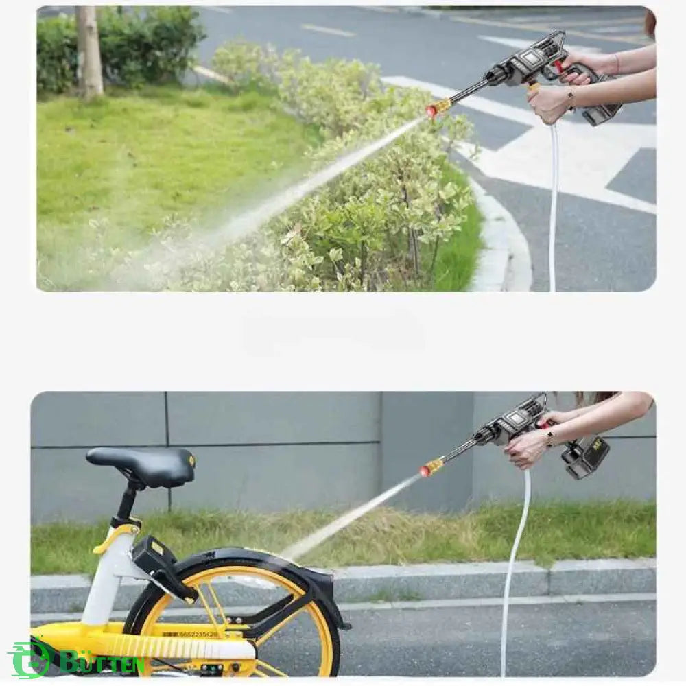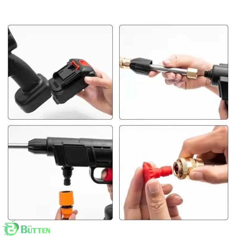 Com seu design leve e sem fio, a Lavadora de Alta Pressão é fácil de usar e controlar. Basta conectar uma mangueira ao balde de água e desfrutar de uma limpeza potente e prática, sem a necessidade de proximidade com tomadas.