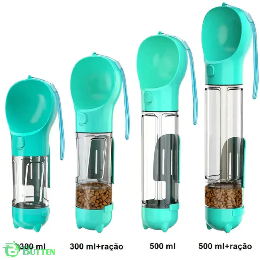 • Opção 2: 1x 300ml + Compartimento Ração Garrafa Portátil para Pets 4 em 1 - PetWater